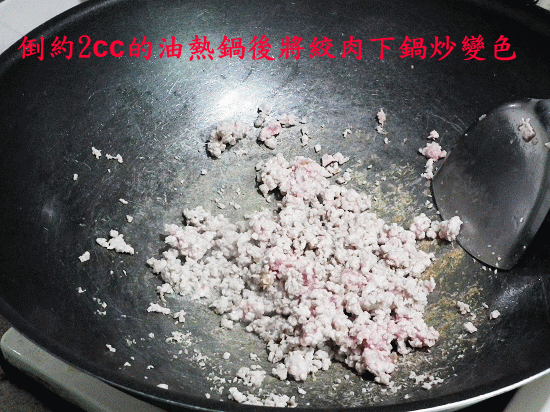 我的油是真的放很少很少啦,幾乎可以說是沒放XD總之絞肉和香菇下去爆香以後