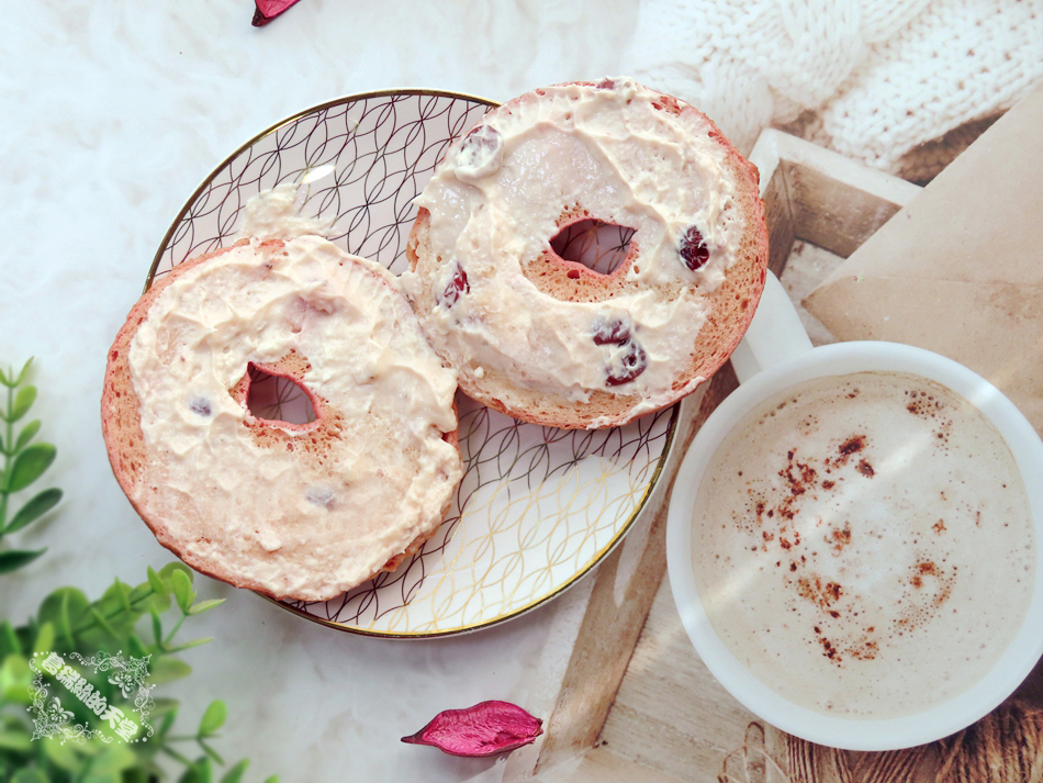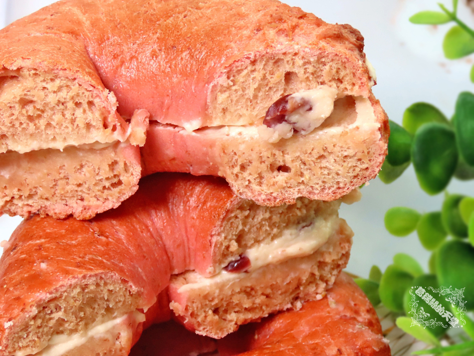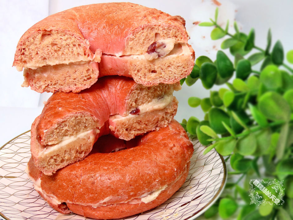 接下來想跟大家推薦我個人很喜歡的一款,也是季節限定才有的「草莓乳酪減醣貝果