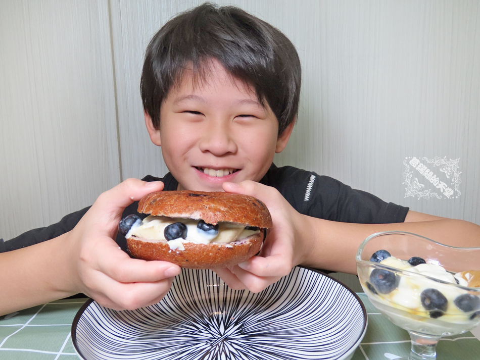一口咬下,吃得到濃郁乳酪與藍莓的酸甜味兒,口感柔順、風味清甜解膩,不會覺得過甜,藍莓雪酪減醣貝果和草莓乳酪減醣貝果一樣深得我家孩子們的喜愛!