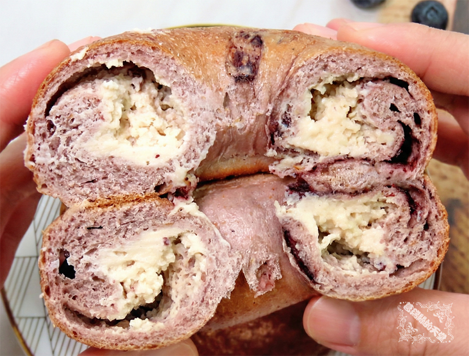 整顆貝果散發濃郁藍莓香氣,看得到藍莓果粒,與Cream乳酪完美融合。